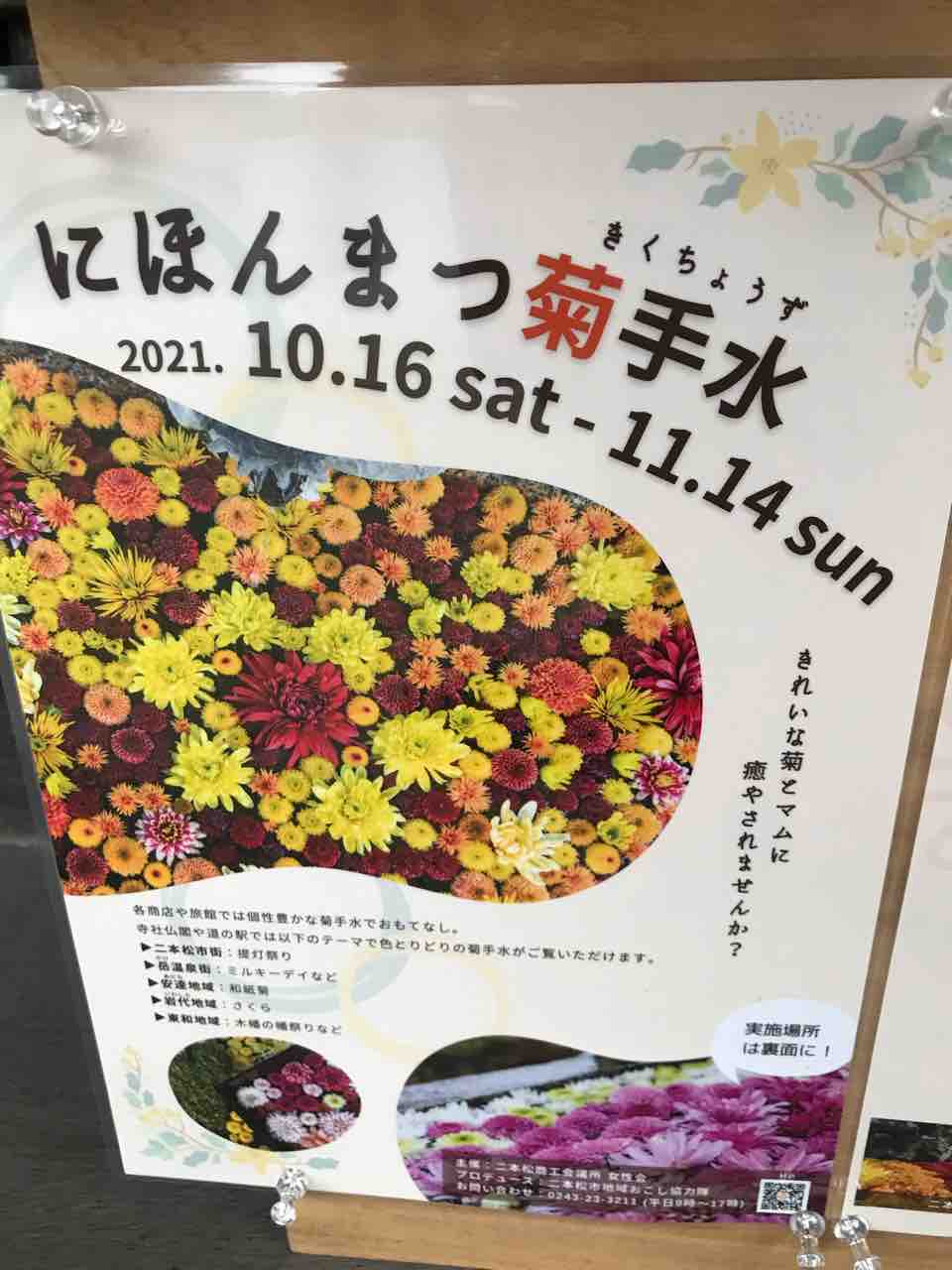 10月の禅とYOGAと和菓子の会場である、二本松市 龍泉寺さんにお邪魔すると、いつもと違う光景が!!これは何ですか?と尋ねると、今日から『にほんまつ菊手水』が始まったんですよ~!?と。お話を聞くと、会場ごとにテーマが異なると言う事で、各会場巡ってきたと言う方が龍泉寺さんにも足を運ばれてました!!ご一緒にヨガもどうですか?とお誘いしたかったのですが…(笑)皆さん目的は違いますからねっ!!逆に私は他の会場に足を運ぶ時間はなく…。