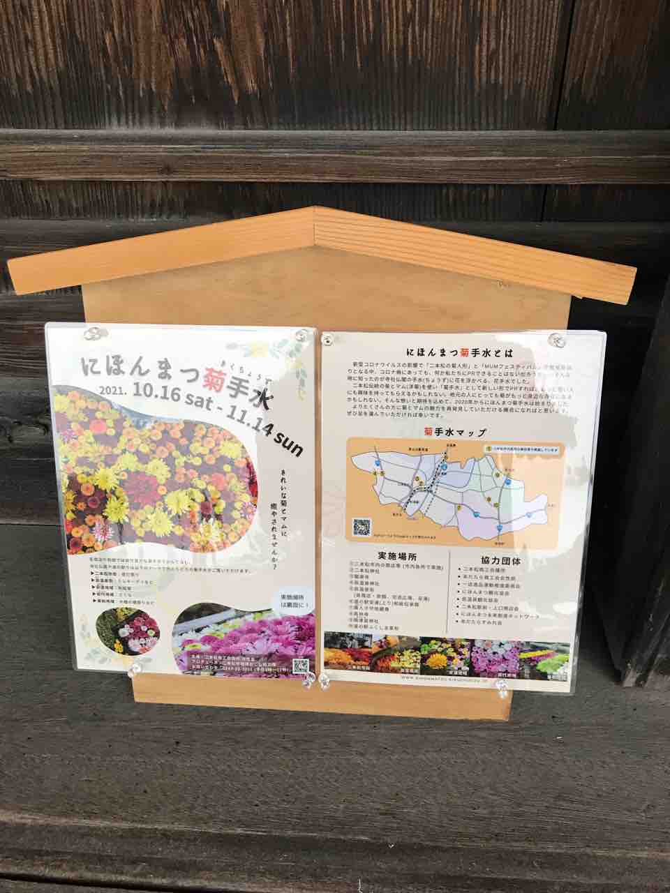 福島県二本松市でも二本松の菊人形・MUM Festivalが延期となるなか、"二本松の菊”のPRとなるよう、菊とマム(洋菊)を用いた"花手水"を地域おこし協力隊で企画し、昨年初開催。菊を浮かべる花手水を”菊手水”と呼び、二本松市内の各所で菊を浮かべて飾りました。