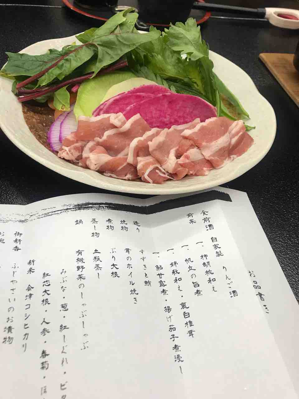 若女将栽培の有機野菜を使ったしゃぶしゃぶは湯通ししても、大根の色変わらず!!