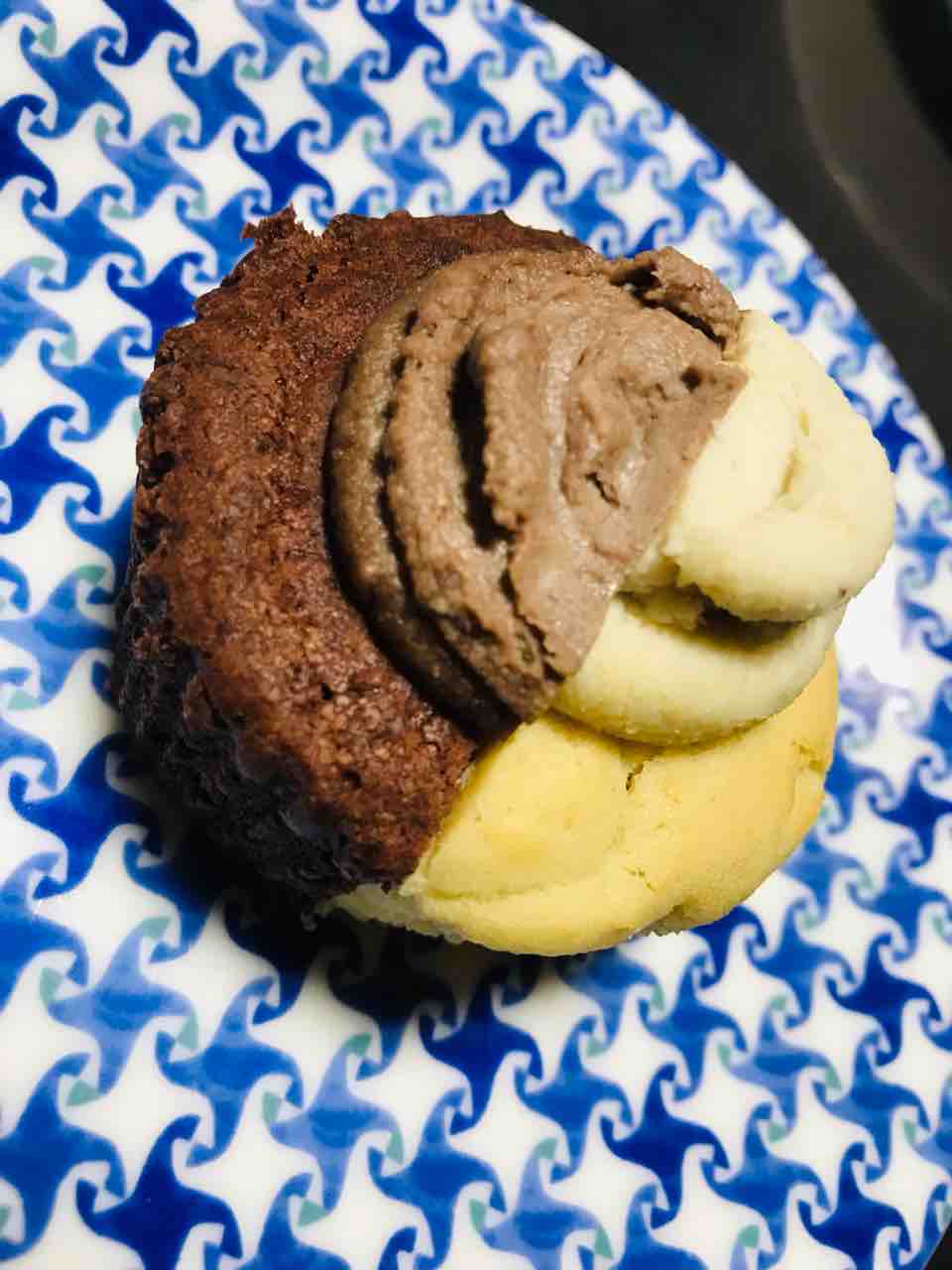 そして、若女将のヴィーガンマフィンは帰宅後、ハーフ&ハーフにしておやつに!!バナナとチョコ合う~!!