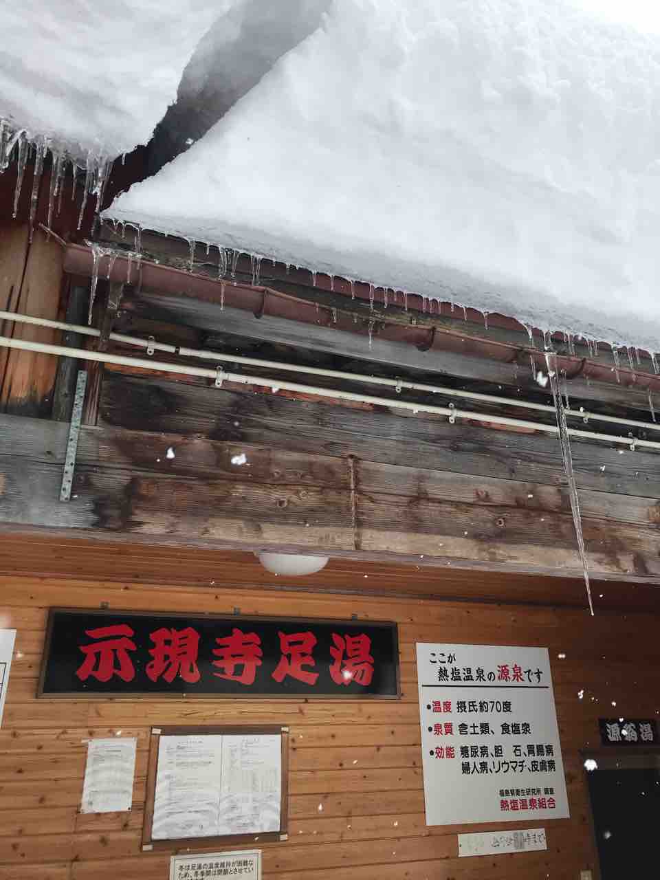 なんとか無事着いたところで、足湯は冬季閉鎖ですが、この見事な氷柱!!