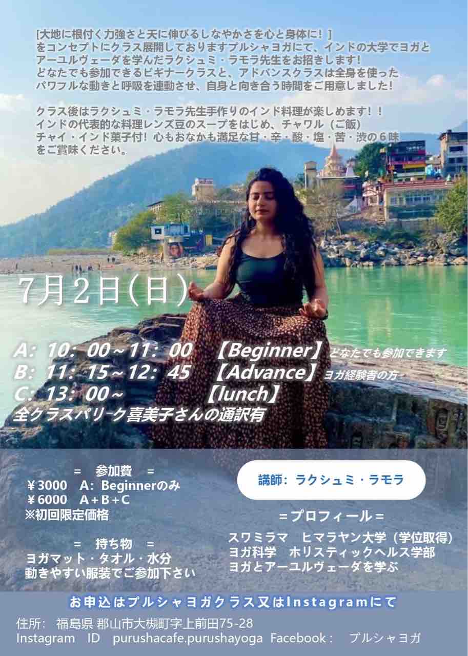 ラクシュミ・ラモラ先生のワークショップ 7月2日(日)