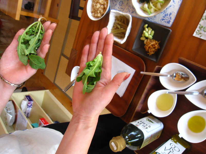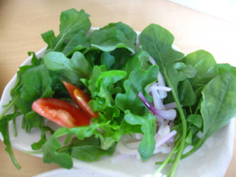 煮物も出来上がり、リーフレタスサラダの下準備と、天ぷら鍋には春菊が・・・